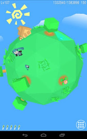 はちゅねでんちにはおまけモードも搭載されており、ウィジェットのはちゅねミクをタップすると「はちゅね星」に移動できます。大きな星の上にミニサイズのはちゅねミクがおり、星に生えている雑草をタップすると駆け寄ってきて、ネギで刈り取ってくれます。星はフリックで回転させられるので、まんべんなくキレイにしましょう。毎日手入れをするとネギが手に入り、このネギをたくさん手に入れるとミニはちゅねが出現してお手伝いをしてくれるなど、ファンにはたまらないさまざまなイベントが起きる設定になっています。